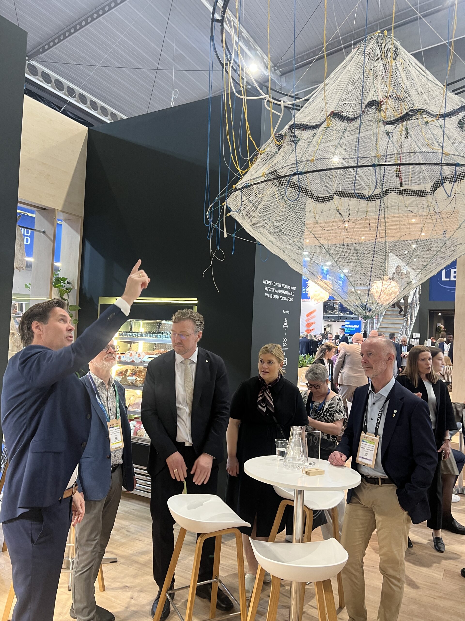 Fylkespolitikerne fikk også tid til lunsj med fiskeri- og havminister Marianne Sivertsen Næss, samt besøk på flere stands med henne. Vi besøkte Mowi, Cermaq, Lerøy, SalMar ASA, Br. Karlsen, Nova Sea, Kime Akva og Nergård, AKVA group, Coldwater Prawns, Nordic Group og Br. Sperre.